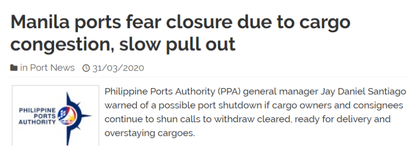 期有出口到菲律宾马尼拉,请及时关注港口最新动态和动态,并提醒收货人尽快提货,避免产生高昂的罚金!