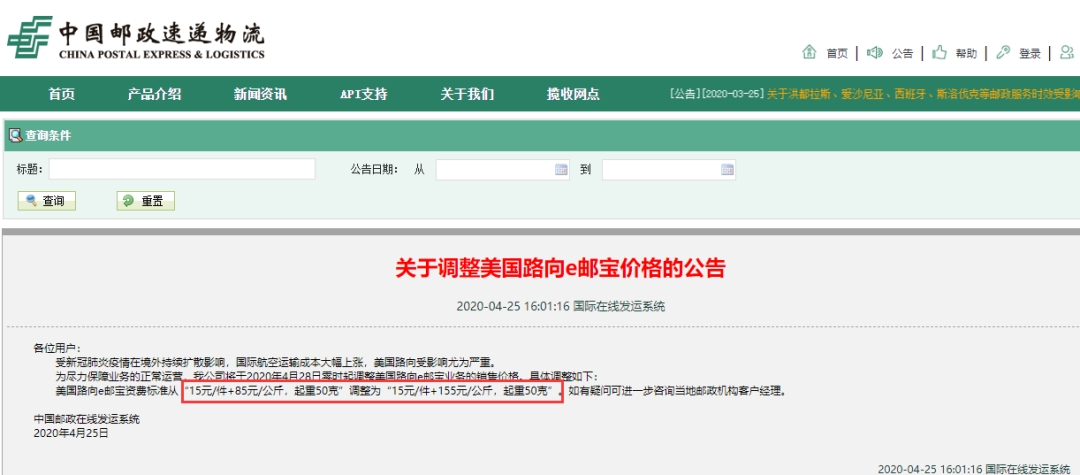 据了解,从4月28日起,美国路向e邮宝资费标准从“15元/件+85元/公斤,起重50克”调整为“15元/件+155元/公斤,起重50克”。加上在此之前,联邦快递收取临时航线调整费、DHL收取紧急情形附加费、UPS收取旺季附加费,物流涨价潮可谓来势汹汹。