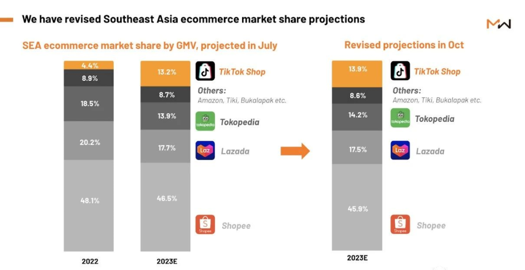 近日,研究机构Momentum Works更新了各大电商平台在东南亚所占市场份额的预测。最新数据显示,TikTok Shop的市场份额非但没有下降,还从今年7月的13.2%增长到了13.9%。