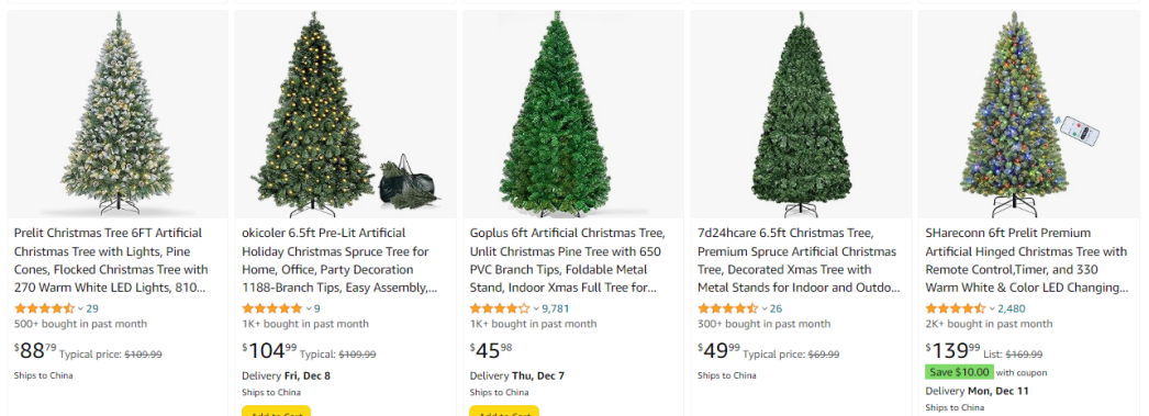 圣诞树圣诞节必不可少的装饰品,在亚马逊上,相关在售listing很多,不少产品留评高达9000+。许多圣诞树的外观已经获得外观专利,在选品时一定要注意避坑。