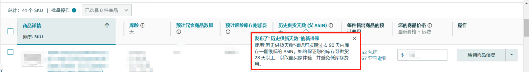 历史供货天数是一种以天为单位的回顾性指标,用于识别过去库存水平持续偏低,且需要缴纳超低库存费的商品。