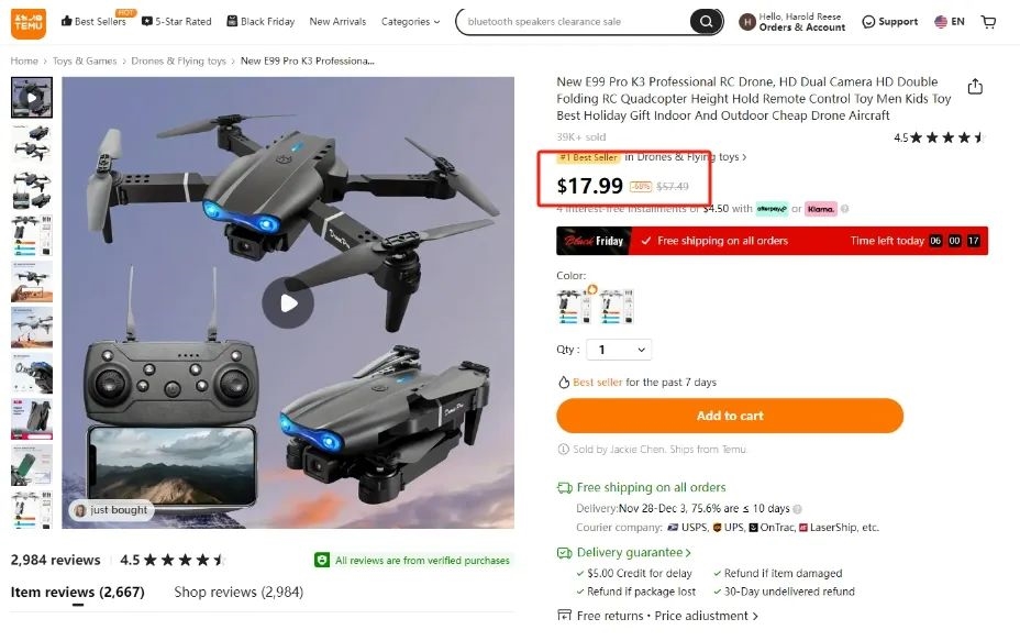 11.78美元的蓝牙音箱,17.99美元就可以买到的无人机,作为消费者,谁不会为这样的一个低价平台心动?其它平台的卖家看到后也纷纷表示,这谁玩得过?