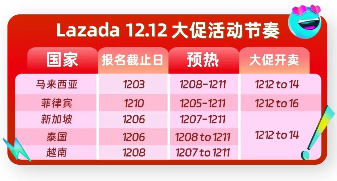 Lazada东南亚双12大促时间表(图源:Lazada东南亚电商)