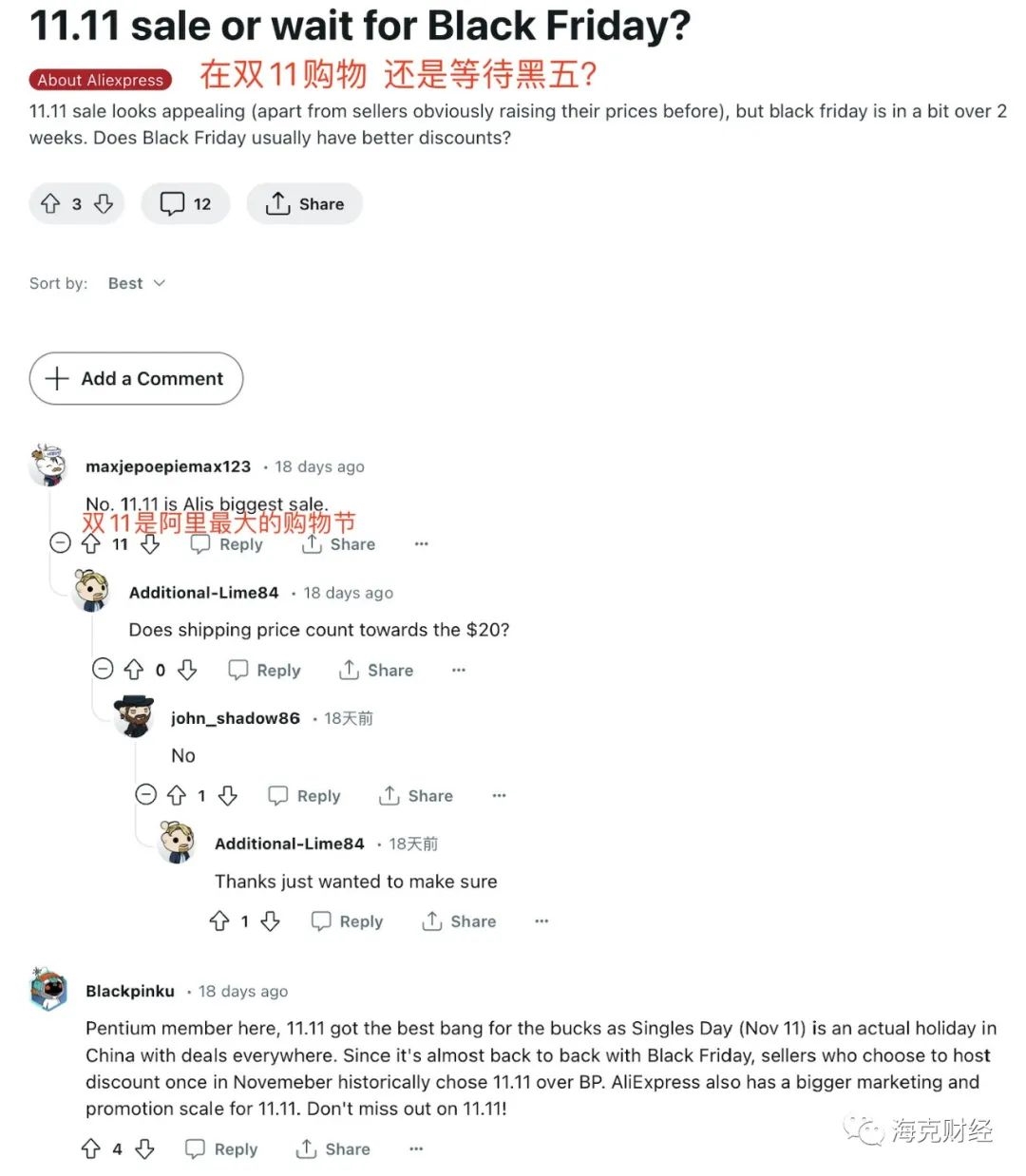 图:海外消费者热议,速卖通双11比亚马逊黑五更早也更划算