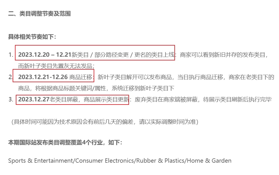 近日,阿里国际站发布公告称,为了优化商品结构,提升买家体验,阿里巴巴预计将于2023年12月20日起对国际站发布类目进行调整,预计2023年12月27日调整完毕。