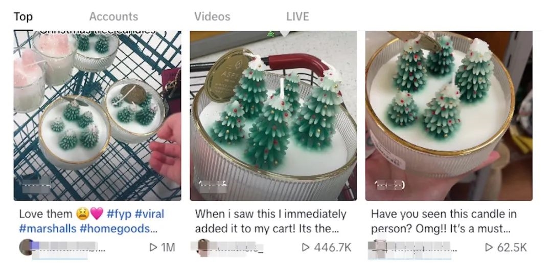 就比如这款精致的圣诞树蜡烛,已经在外网收获了超百万次的浏览量,超精致的外观已经让不少消费者带着关键词(Christmastreecandle)直接搜索下单!